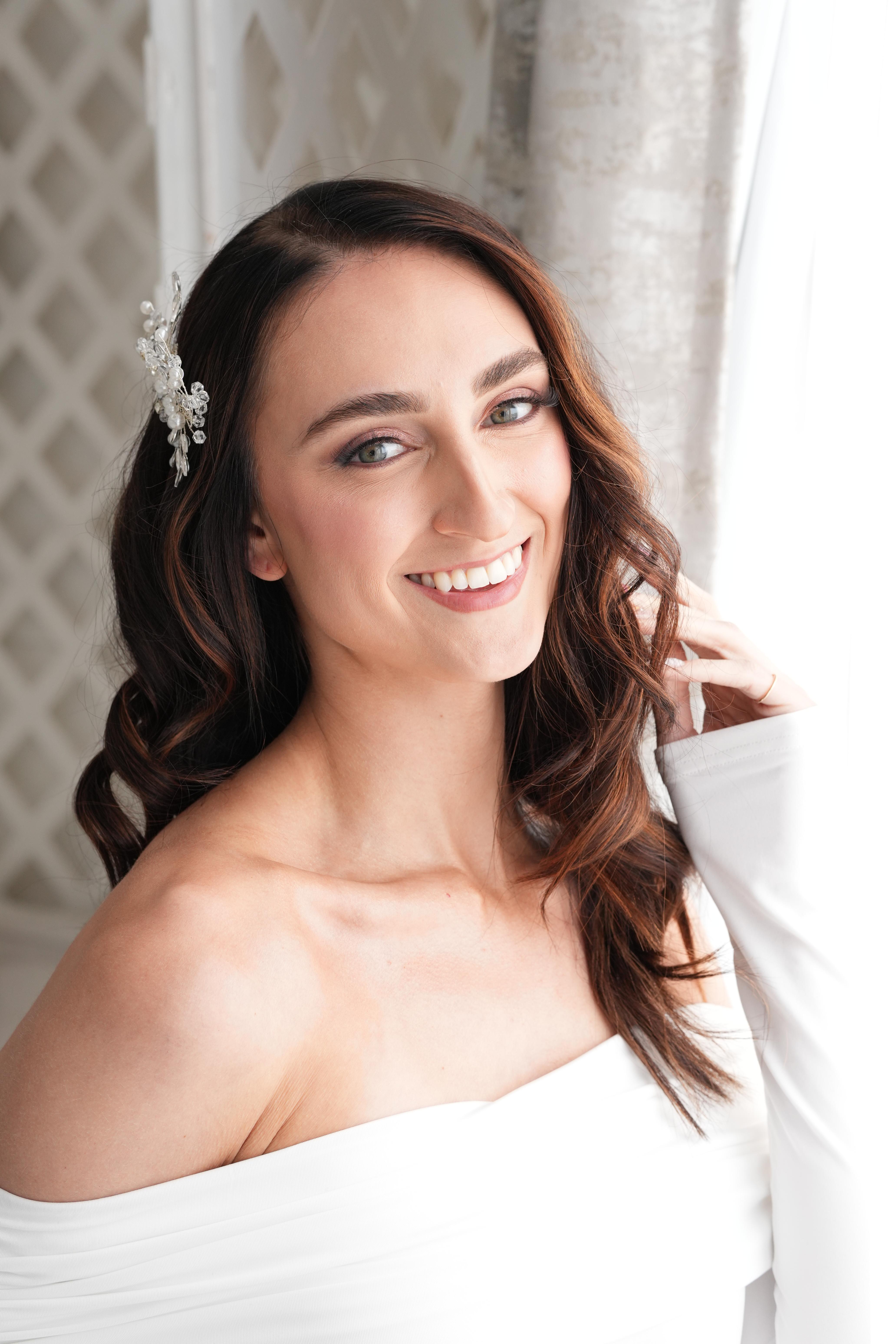 Elegant, long-lasting hairstyling, from romantic waves to polished updos, created to complement your dress, veil, and overall bridal aesthetic.